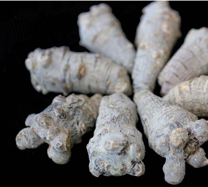 三七根茎(剪口)皂成成分:三七根茎中的皂苷种类和各单体皂苷的比例与主根很相似,总皂苷含量和单体皂苷含量均比主根高。根茎中的总皂苷含量一般在10%左右,Rg1一般可达到4-5%,Rbl一般为3-4%,Rd和Rl得率为1.0%左右。三七根茎是目前加工企业用于提取三七皂苷的主要原料。